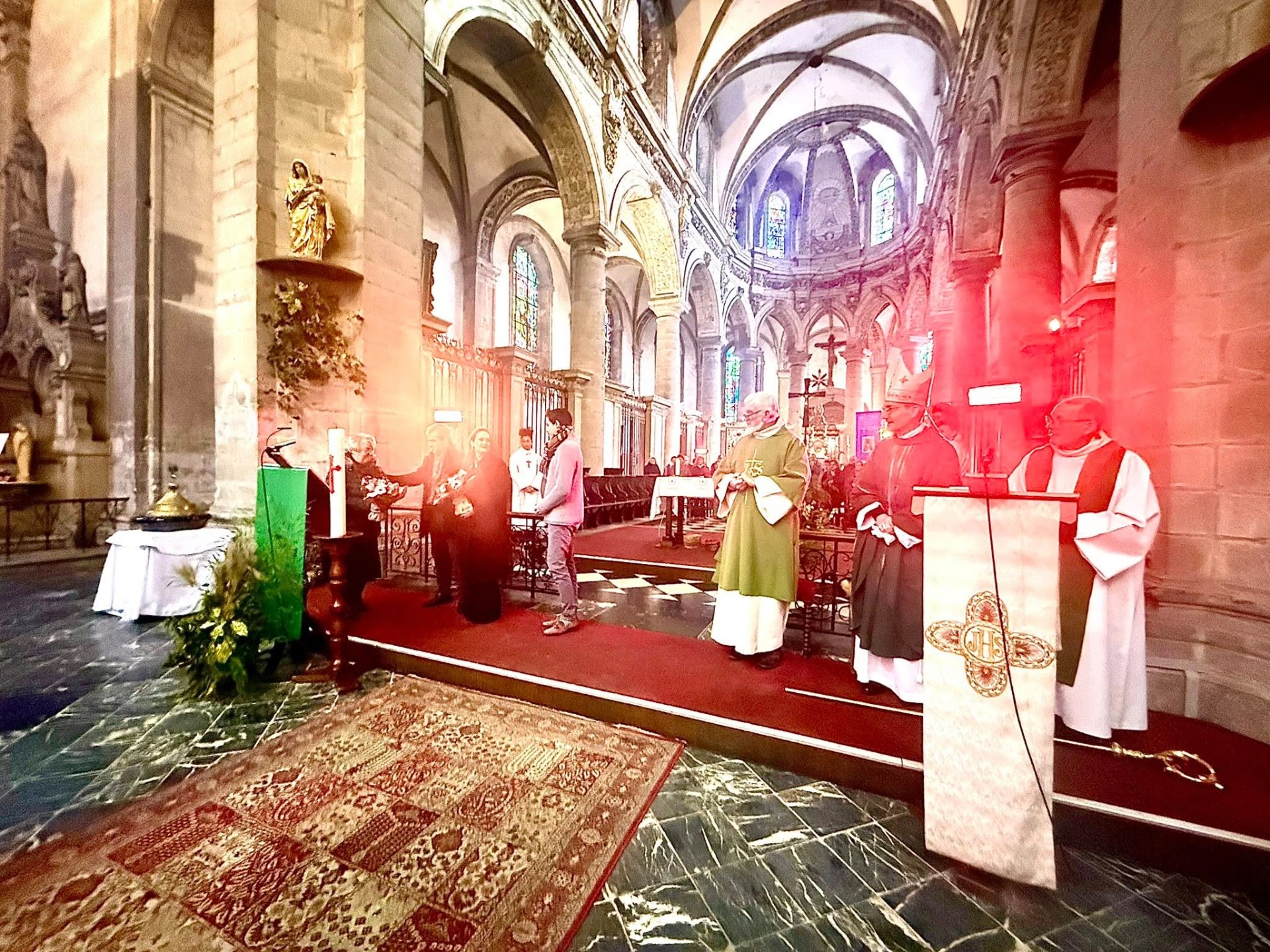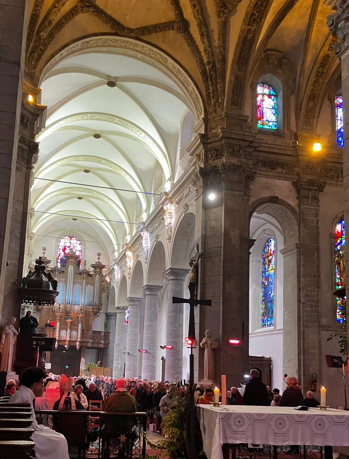 C’est ce que nous avons essayé de vivre pour la messe officielle de réouverture ce dimanche 15 Février, en présence de Monseigneur Dollman, de la municipalité. Un projet : arriver ensemble, archevêché, municipalité et ses services, les équipes de la paroisse (EAP, chorales, équipes florales, etc…) avec Héloïse Poulet soprano internationale, en lien avec Loïc et Emmanuel, nos organistes. Je crois que cela s’est ressenti par l’assemblée ; je crois aussi fermement que ça réjouit le cœur de Dieu de voir des personnes ensemble. Malgré le froid légendaire de l’abbatiale, les personnes sont heureuses et les échos sont très positifs. La suite pour le chœur ! Et avec cœur !