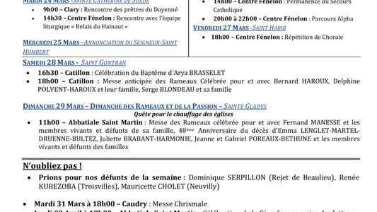Semaine du 13 au 20 Avril 2025: Semaine Sainte et Sainte Semaine