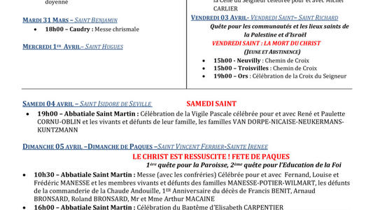 LES OFFICES DE LA SEMAINE SAINTE JEUDI A CATILLON VENDREDI A FOREST SAMEDI A ST SOUPLET ONT LIEU A 19H