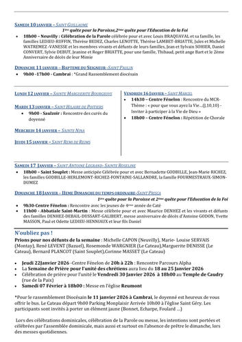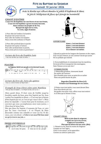 Article publié par response.text()) .then(text => { html = text showLoading = false; })" class="flex justify-center animate-grow-on-hover--small">marylin van dorpe • Publié le Vendredi 09 janvier 2026 - 10h30 • 40 visites Annonces de la semaine 03 - 2026 Télécharger 208.3 Ko Télécharger 11 janvier 2026 Bapteme du Seigneur Télécharger 313.7 Ko Télécharger
