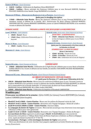 Article publié par response.text()) .then(text => { html = text showLoading = false; })" class="flex justify-center animate-grow-on-hover--small">marylin van dorpe • Publié le Jeudi 26 mars 2026 - 12h23 • 19 visites Annonces de la semaine 14- 2026 Télécharger 290.4 Ko Télécharger 29 mars 2026 Messe des Rameaux Télécharger 558.3 Ko Télécharger