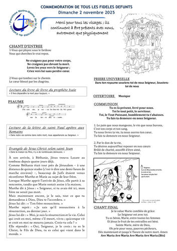 Article publié par response.text()) .then(text => { html = text showLoading = false; })" class="flex justify-center animate-grow-on-hover--small">marylin van dorpe • Publié le Vendredi 31 octobre 2025 • 23 visites Annonces de la semaine 45 - 2025 Télécharger 234.2 Ko Télécharger 1 novembre 2025 Solennite de la Toussaint Télécharger 322.2 Ko Télécharger 2 novembre 2025 commemoration de tous les fideles Télécharger 390.1 Ko Télécharger
